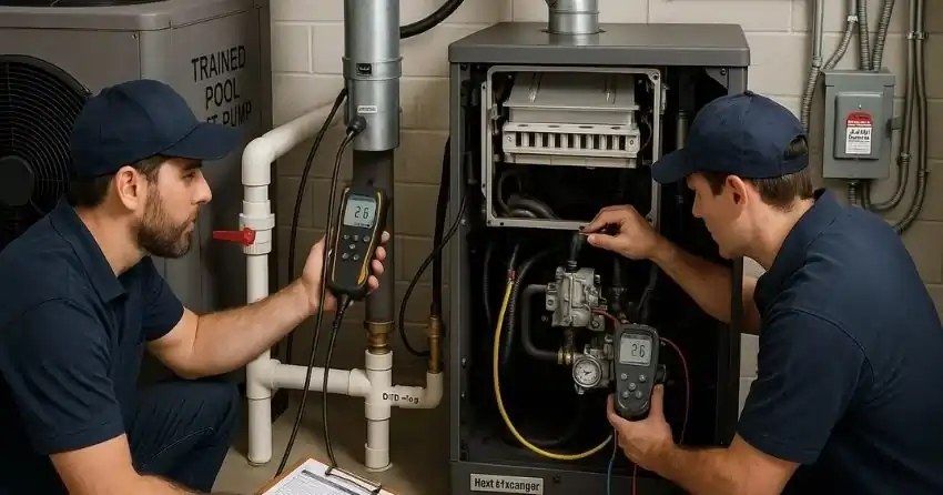 Pool heater repair problems in Humber Grove, Caledon? HVAC Caledon finds the cause, replaces igniters, sensors, gas valves, control boards, and heat exchangers, clears scale, and confirms operation so the water warms up without unnecessary upsells.
