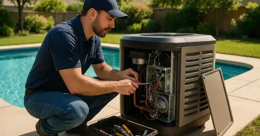 Pool heater repair problems in Humber Grove, Caledon? HVAC Caledon finds the cause, replaces igniters, sensors, gas valves, control boards, and heat exchangers, clears scale, and confirms operation so the water warms up without unnecessary upsells.